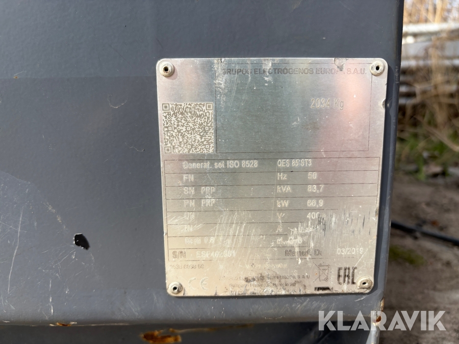 QES 85 är växelströmsgeneratorer, avsedda att användas i kontinuerlig drift på platser där ingen elektricitet är tillgänglig eller som reservaggregat vid strömavbrott.