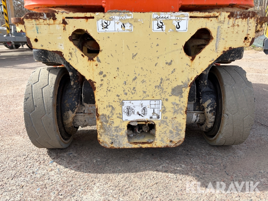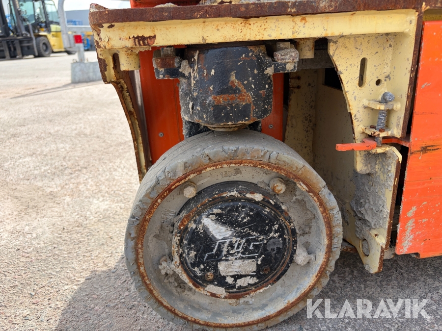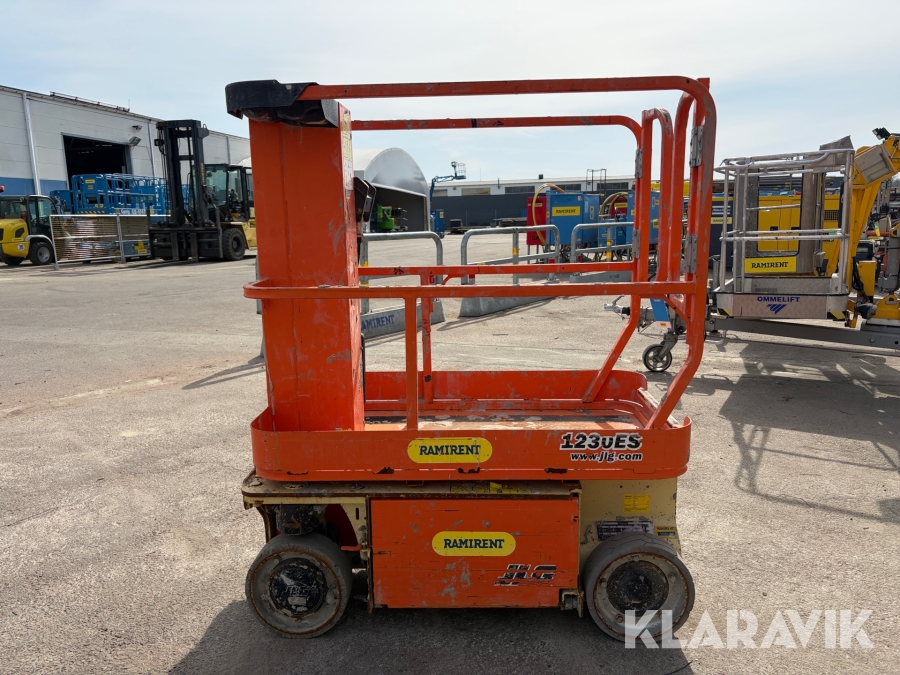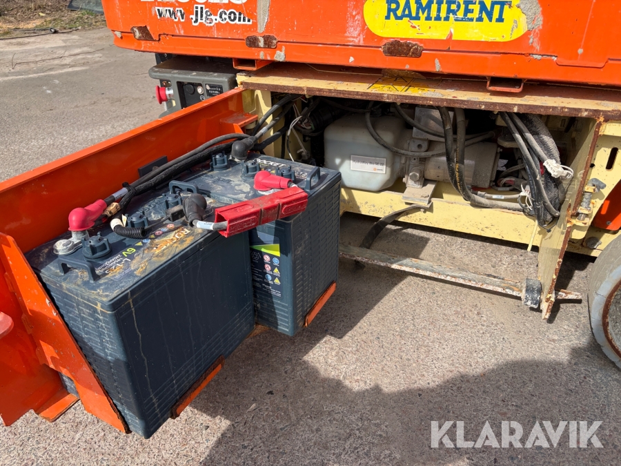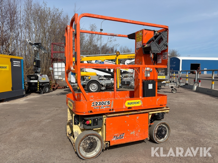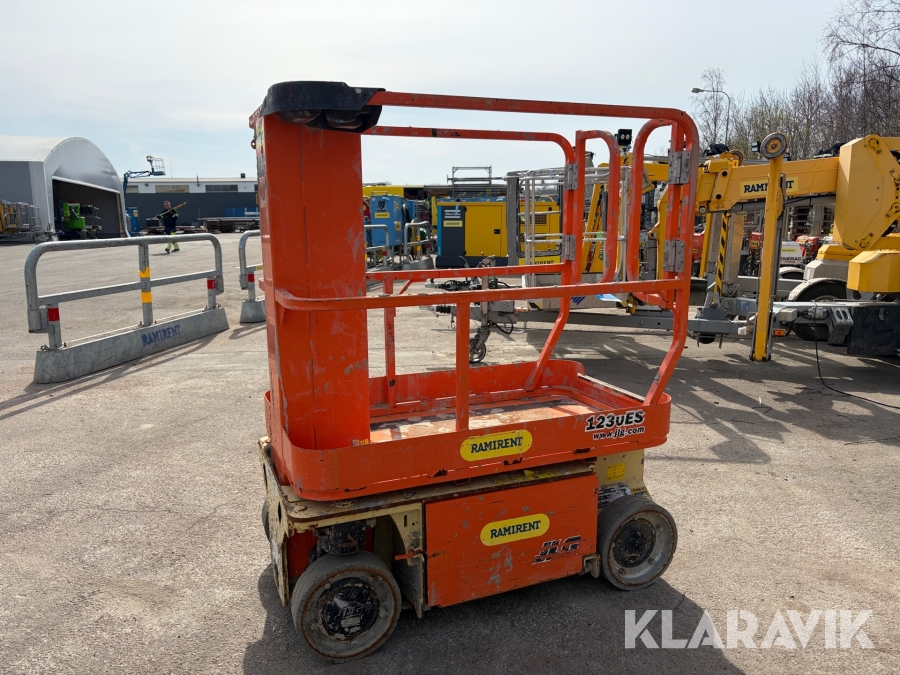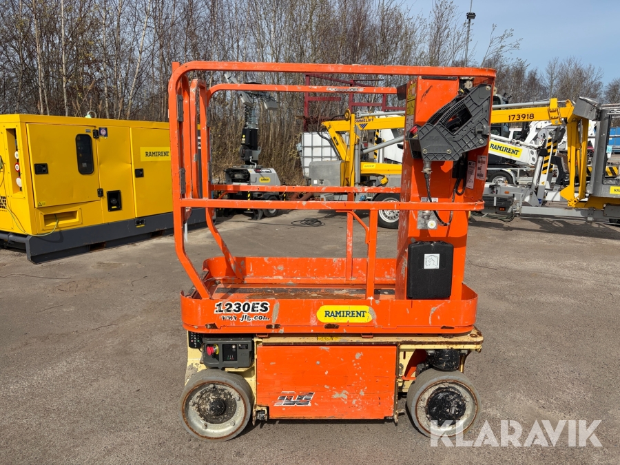 JLG 1230ES är en kompakt och eldriven pelarlift som är idealisk för arbete på höjd i trånga inomhusmiljöer. Med en arbetshöjd på upp till 5,66 meter och en plattformskapacitet på 230 kg erbjuder den en stabil och säker arbetsplattform för en person med verktyg. Dess smala bredd på endast 0,76 meter och låga vikt på cirka 790 kg gör den lätt att manövrera genom standarddörrar och i hissar, vilket underlättar arbete i begränsade utrymmen. Med en svängradie på endast 13 cm och en körhastighet på upp till 4,8 km/h i nedfällt läge är den mycket lättmanövrerad. Säkerhetsfunktioner som lutningssensor, potthålsskydd och varningslarm är standard, vilket gör JLG 1230ES till ett pålitligt val för underhålls- och installationsarbeten inomhus.