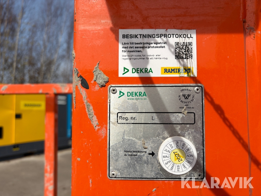Läs om metodikenPga platsbrist är det viktigt att du som köpare hämtar inom 12 dagar från auktionsavslut. Vid frågor om frakt kontakta trade@ramirent.se.