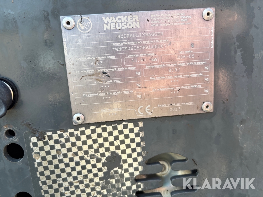 Grävmaskin Wacker Neuson 8003 med tiltrotator och redskap