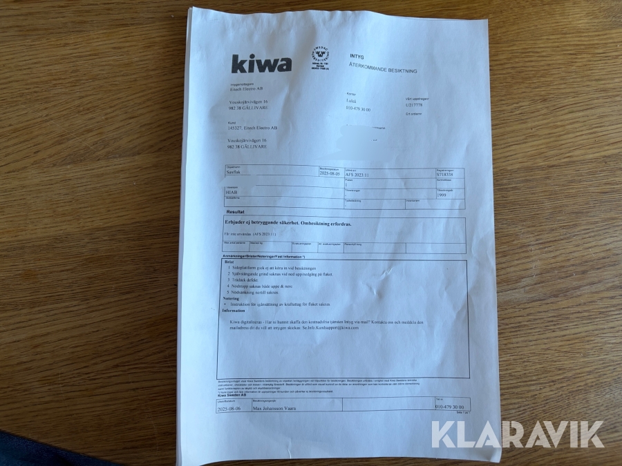 Du som köpare är skyldig att kontrollera objektet vid hämtning. Skiljer sig något avsevärt jämfört med informationen på klaravik.se? Kontakta då Klaravik innan du tar objektet från platsen. Läs fullständiga köpvillkor.
