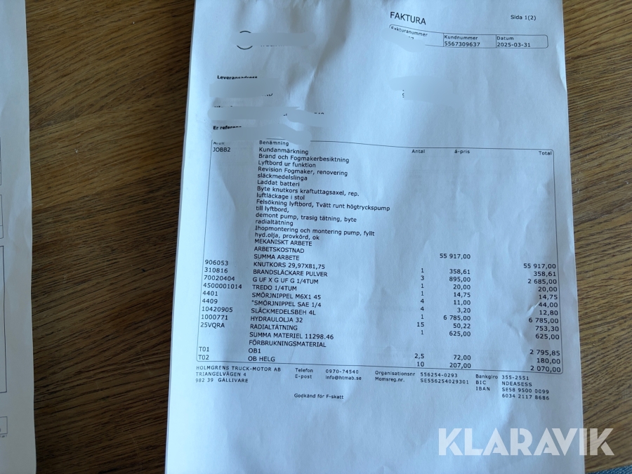 Boka frakt? Det finns ingen specifik information om frakt för just det här objektet, men om du skickar oss en förfrågan via vårt fraktformulär, så undersöker vi möjligheten. Paket, EU-pall eller större maskin? Klaravik har fraktavtal med Schenker och i de fall vi kan hjälpa till med frakt gäller det objekt som ryms i paket eller inom en EU-pall (upp till 120*80 cm och 990 kg). Det går att beställa frakt inom Sverige, dock inte till utlandet. Vid frakt på större maskiner rekommenderar vi gärna transportföretag som du kan kontakta.