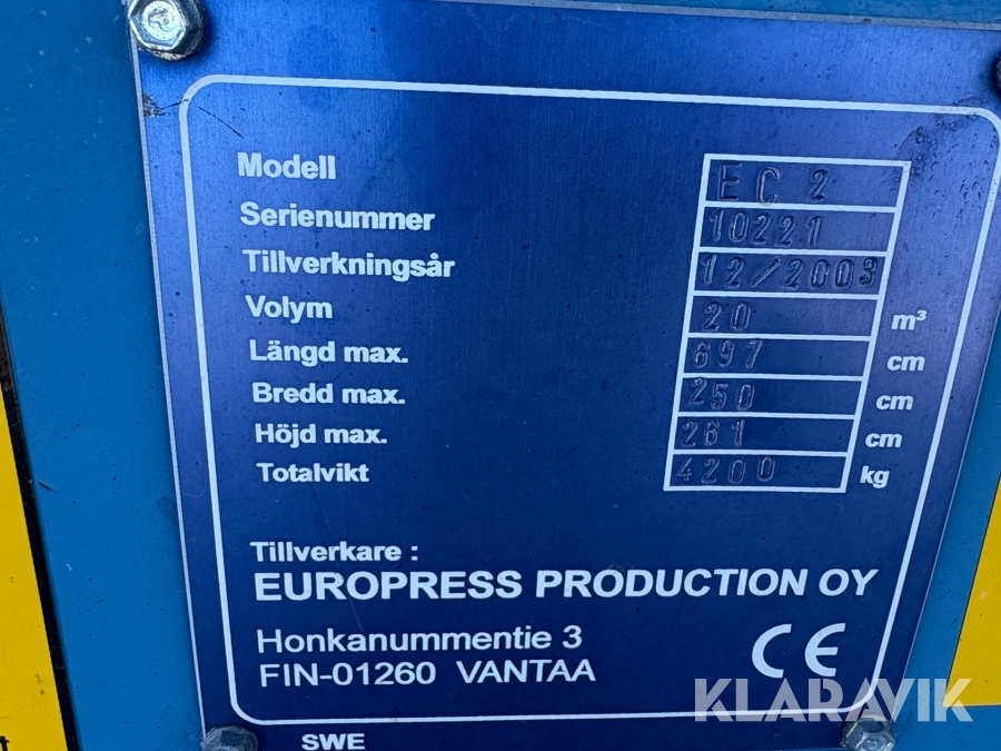 Boka frakt? Det finns ingen specifik information om frakt för just det här objektet, men om du skickar oss en förfrågan via vårt fraktformulär, så undersöker vi möjligheten. Paket, EU-pall eller större maskin? Klaravik har fraktavtal med Schenker och i de fall vi kan hjälpa till med frakt gäller det objekt som ryms i paket eller inom en EU-pall (upp till 120*80 cm och 990 kg). Det går att beställa frakt inom Sverige, dock inte till utlandet. Vid frakt på större maskiner rekommenderar vi gärna transportföretag som du kan kontakta.