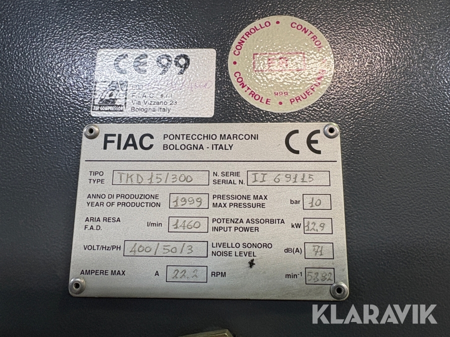 Skruvkompressor Fiac TKD 15/300