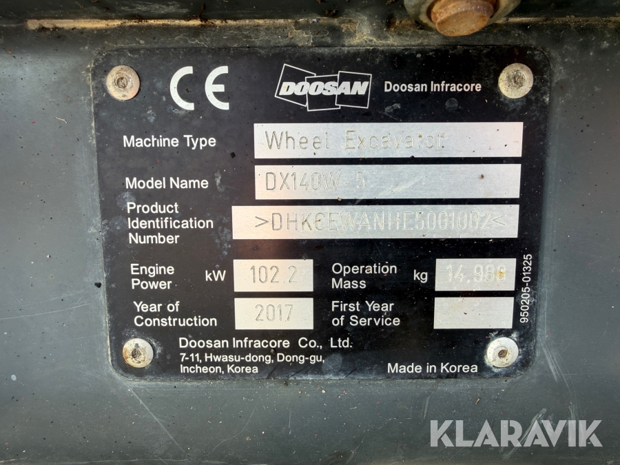 Hjulgrävare Doosan DX140W-5