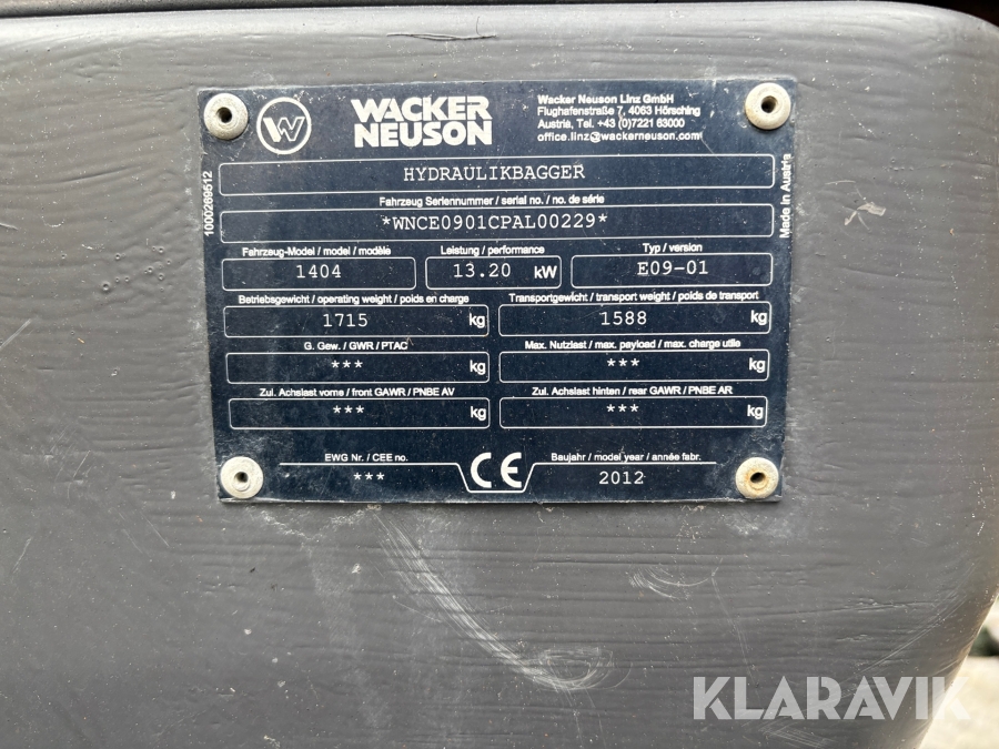 Minigrävare Wacker Neuson 1404 RD med maskintrailer