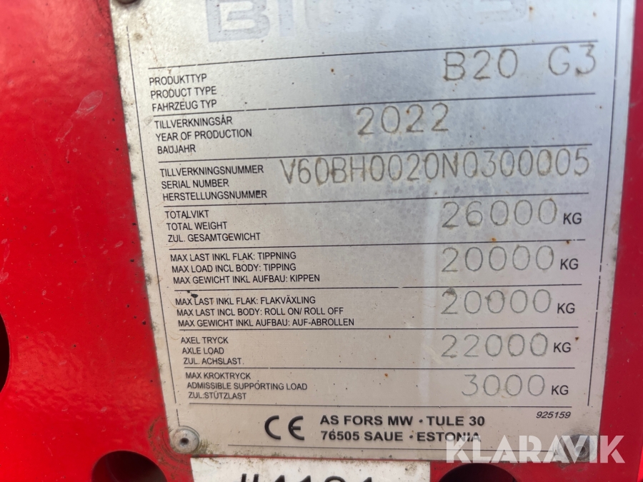 Lastväxlarvagn Bigab B20 G3
