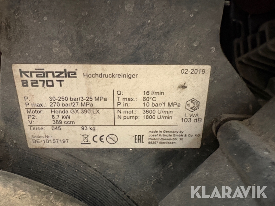 Högtryckstvätt Kränzle B270T