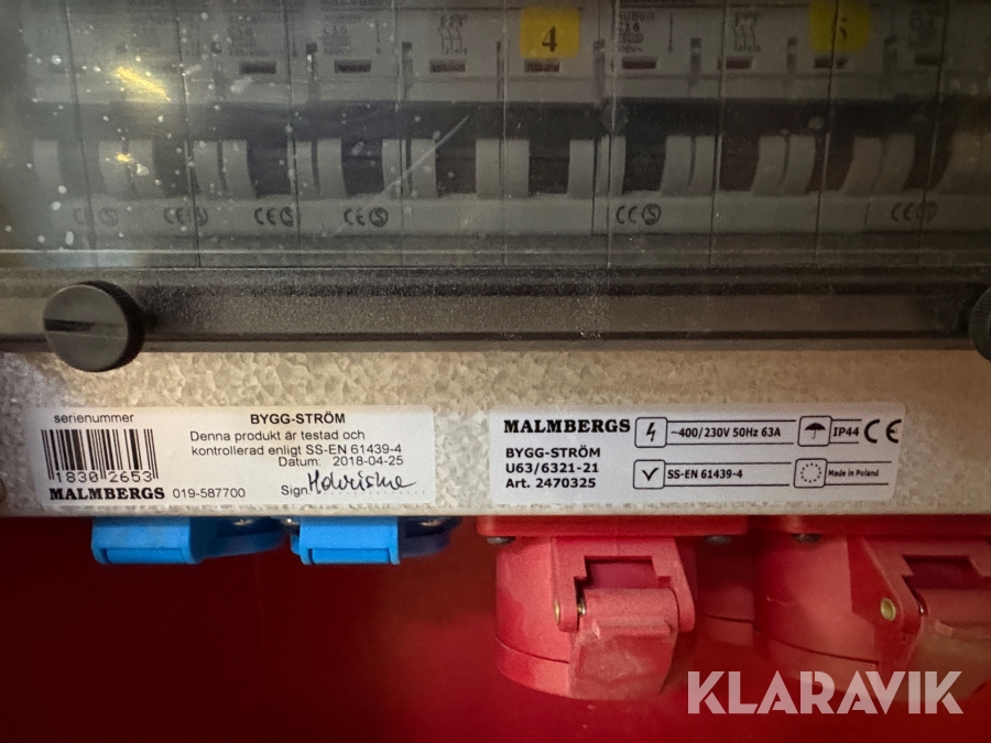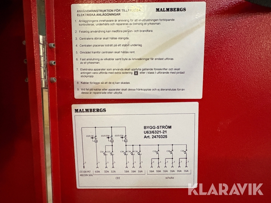 Elcentral Malmbergs U63/6321-21 Byggström 63A