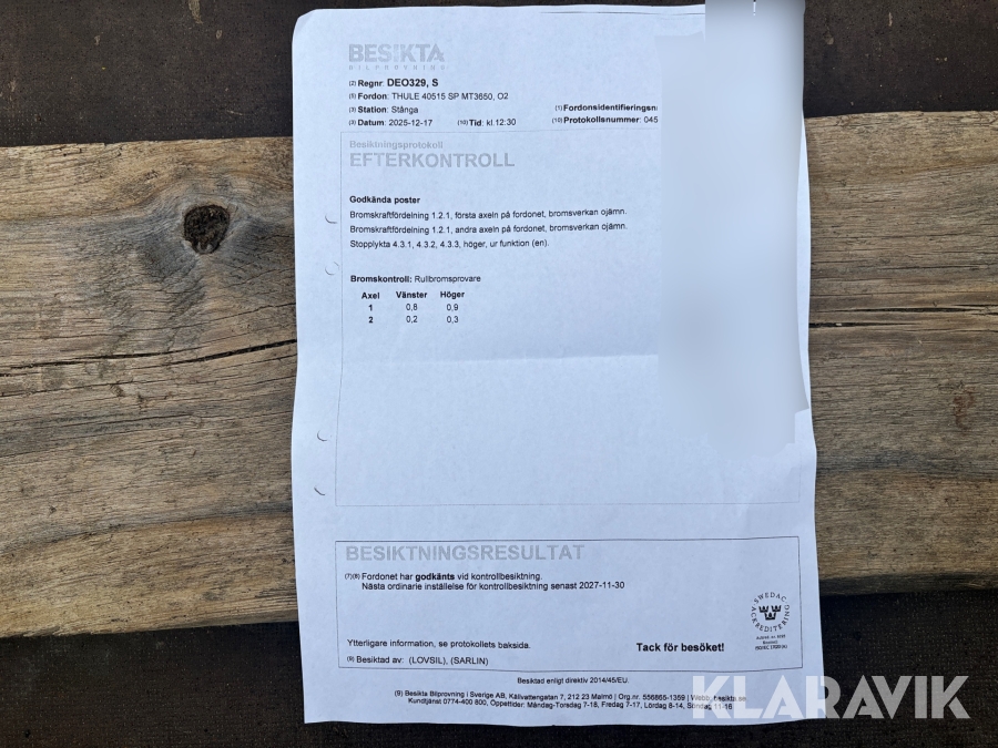 Du som köpare är skyldig att kontrollera objektet vid hämtning. Skiljer sig något avsevärt jämfört med informationen på klaravik.se? Kontakta då Klaravik innan du tar objektet från platsen. Läs fullständiga köpvillkor.