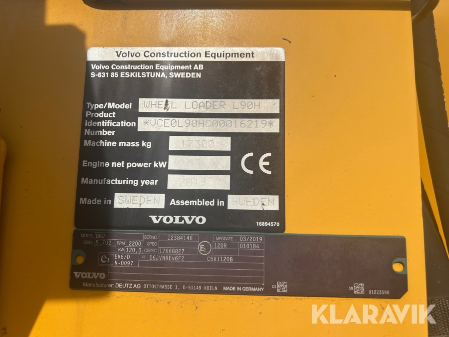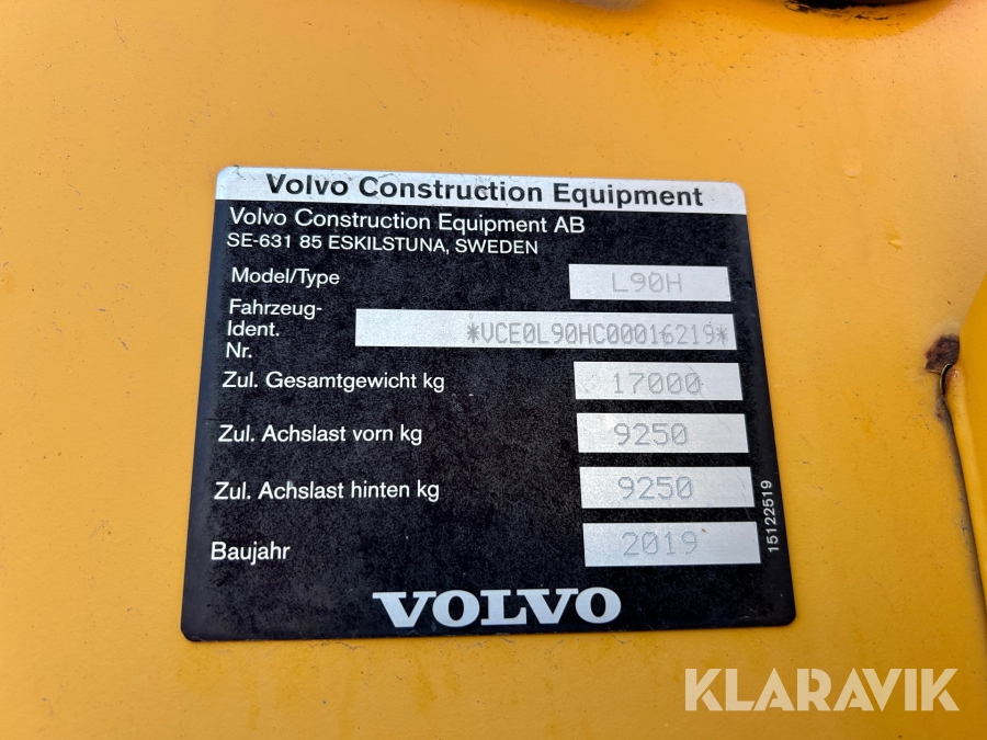 Hjullastare Volvo L90H med skopa & gafflar