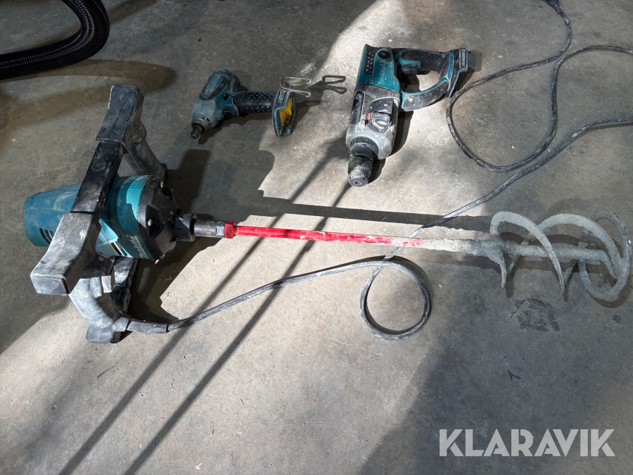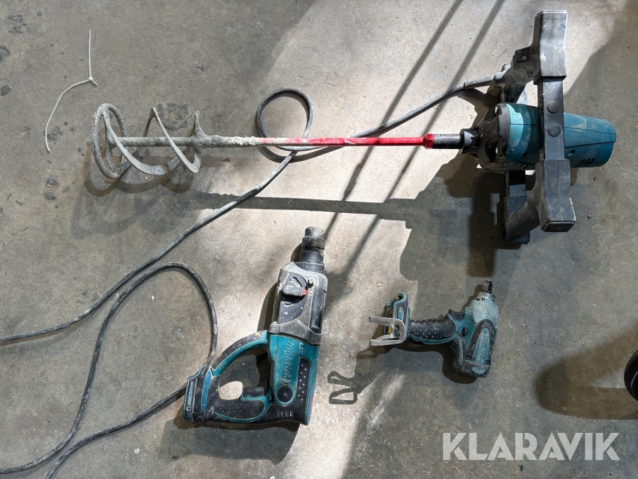 Kit med handmaskiner från Makita slagborr, borrmaskin och bruksblandare
