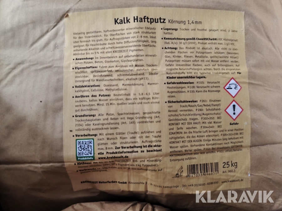 Fin marmorkalkhydrat, italiensk marmorsand och kvartsand ger denna kalkputs en mycket hög vithetsgrad samt utmärkta bindnings- och vidhäftningsegenskaper, helt utan tillsats av syntetiska hartsbindemedel eller syntetiska pigment som titandioxid.