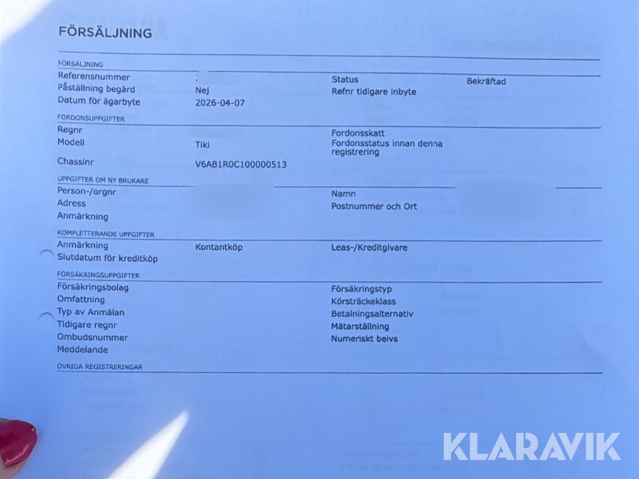 Du som köpare är skyldig att kontrollera objektet vid hämtning. Skiljer sig något avsevärt jämfört med informationen på klaravik.se? Kontakta då Klaravik innan du tar objektet från platsen. Läs fullständiga köpvillkor.