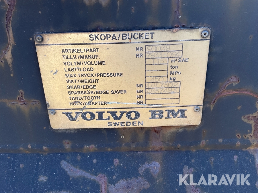 Planerskopa Volvo BM Stora BM 1,15m3 SAE
