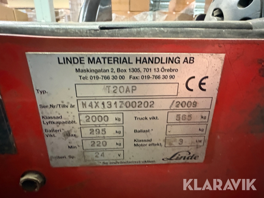 Plocktruck Linde T20AP med batteriladdare