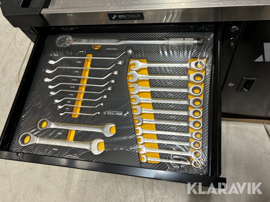 Tillbehör: Insexnycklar, hålslagsatser med mera – allt organiserat i märkta skumfack