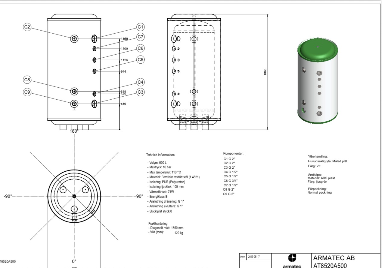 Ackumulatortank 8520A500 Rostfritt 500L