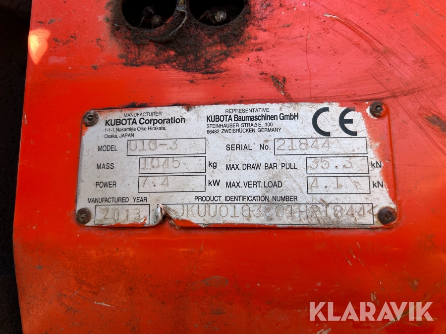 Grävmaskin Kubota U10-3 med 3 skopor