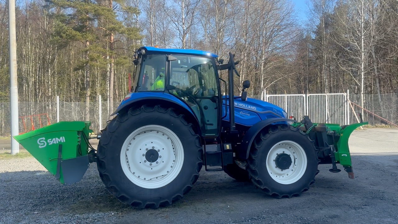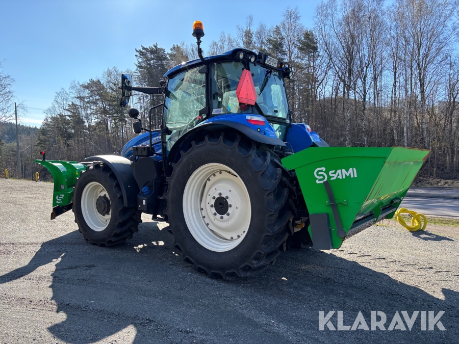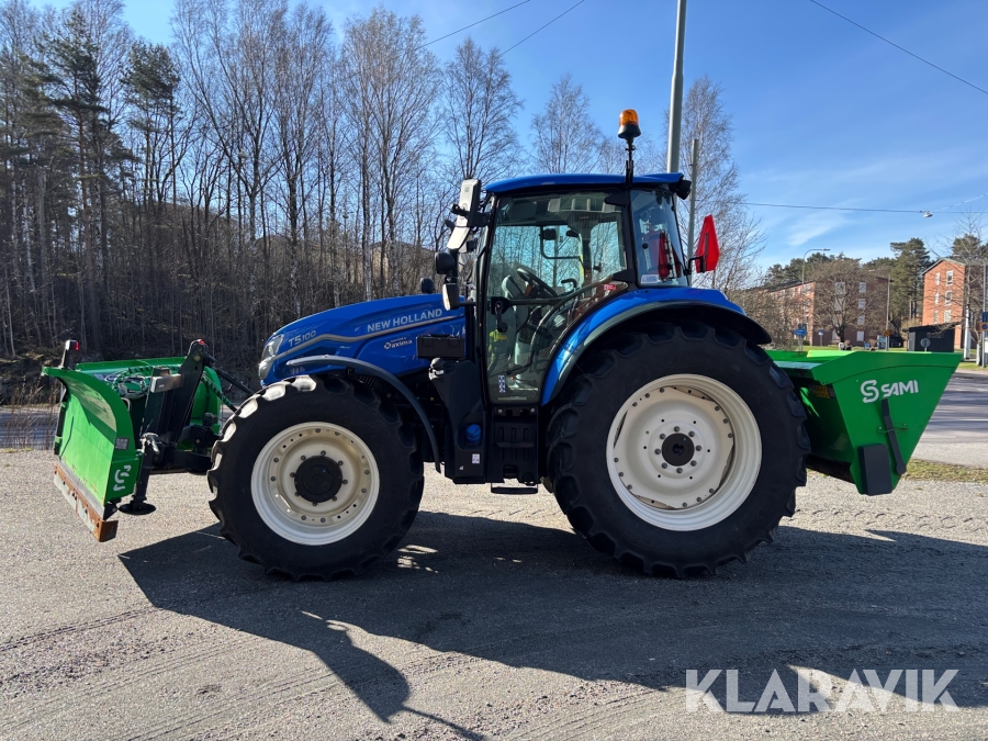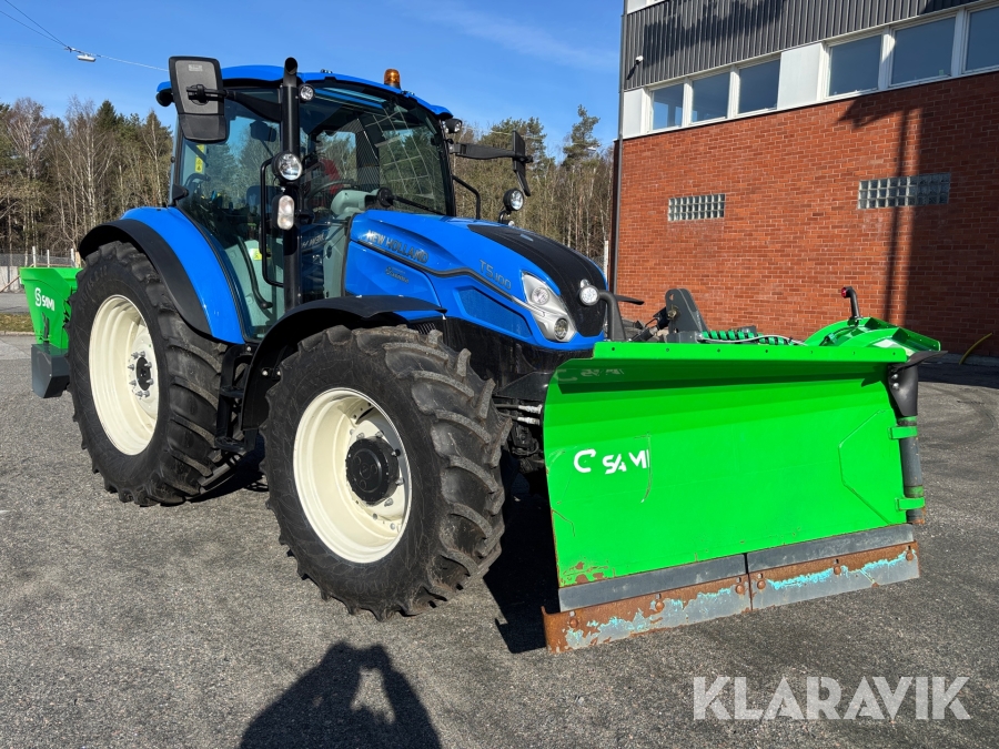 Traktor New Holland T5.100 207h med vikplog och sandspridare