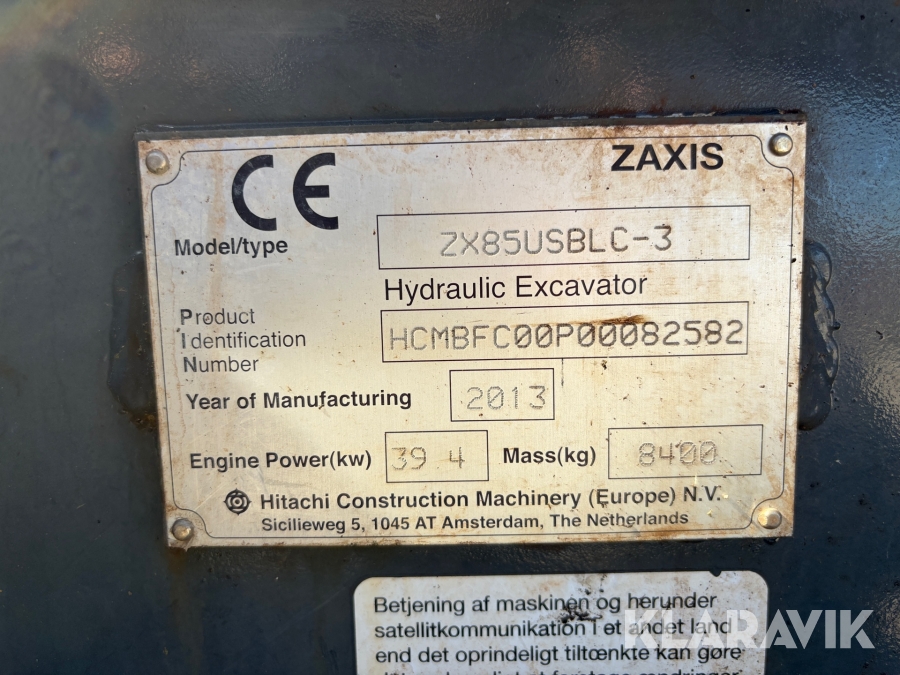 Grävmaskin Hitachi ZX85USBLC-3 med tiltrotator och 4 st redskap