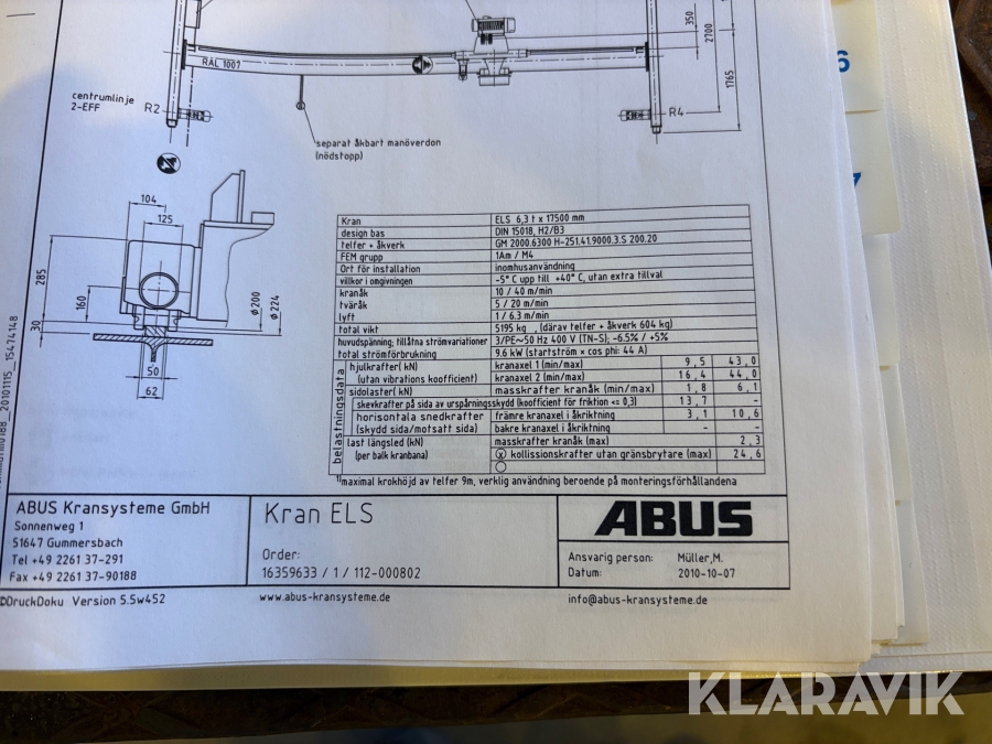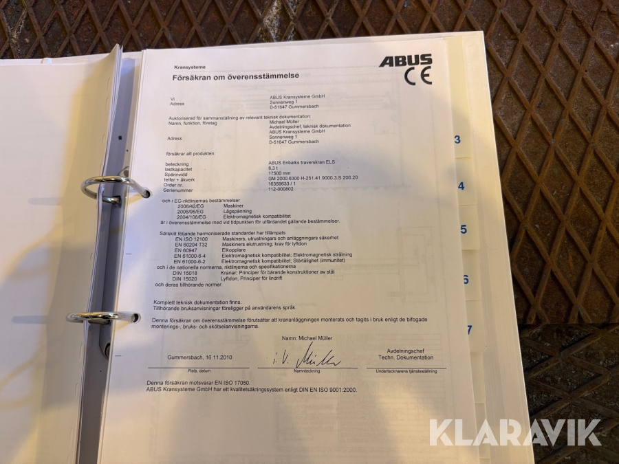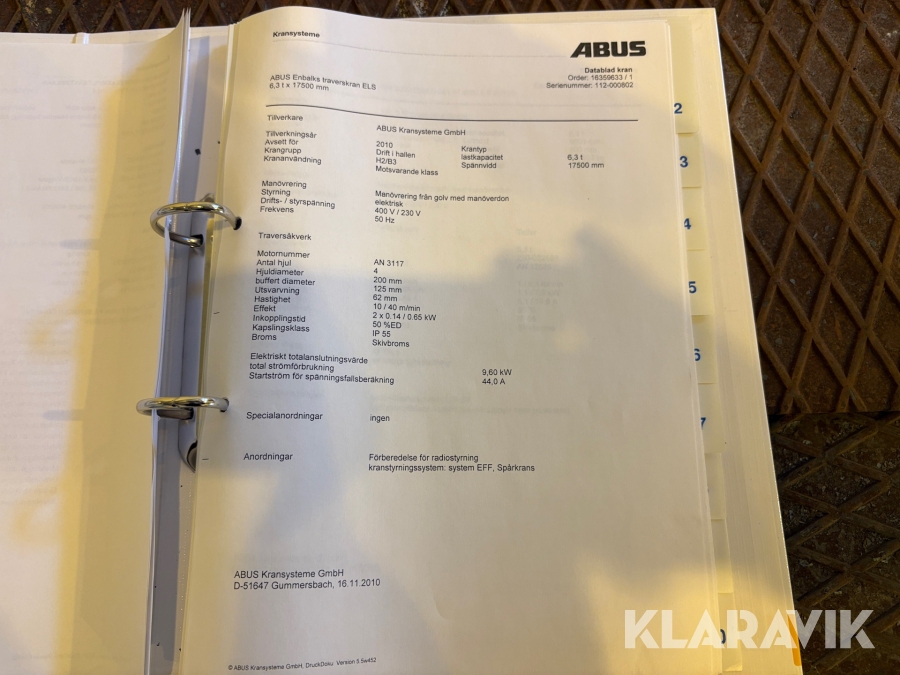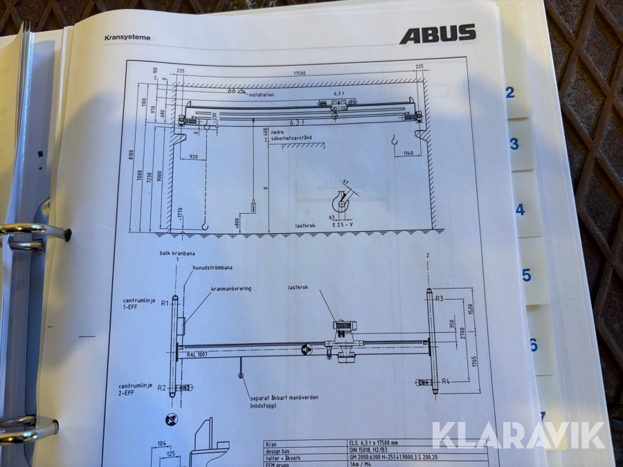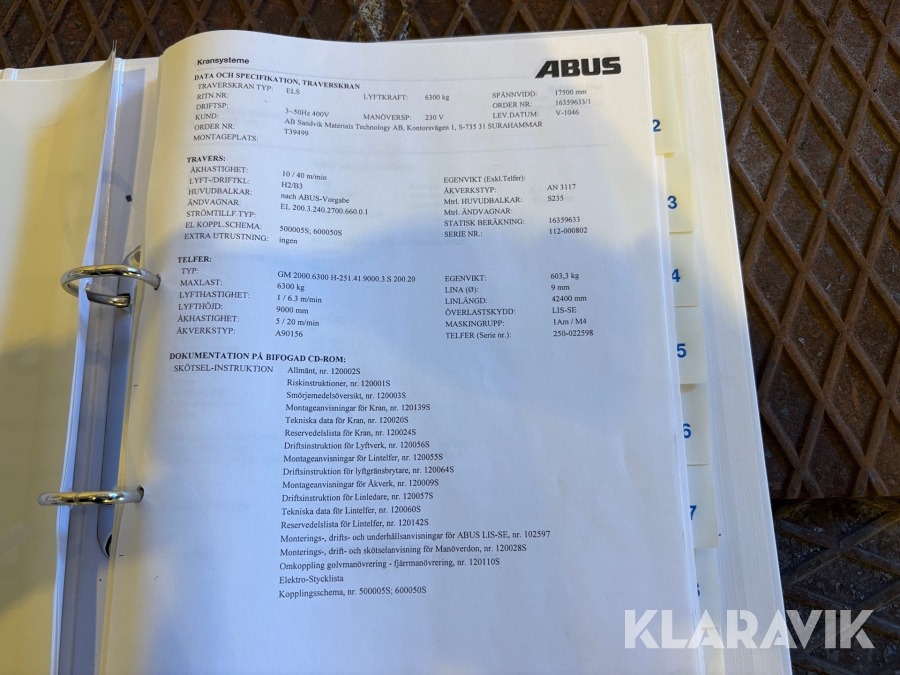 Traverskran ABUS 6,3 ton komplett