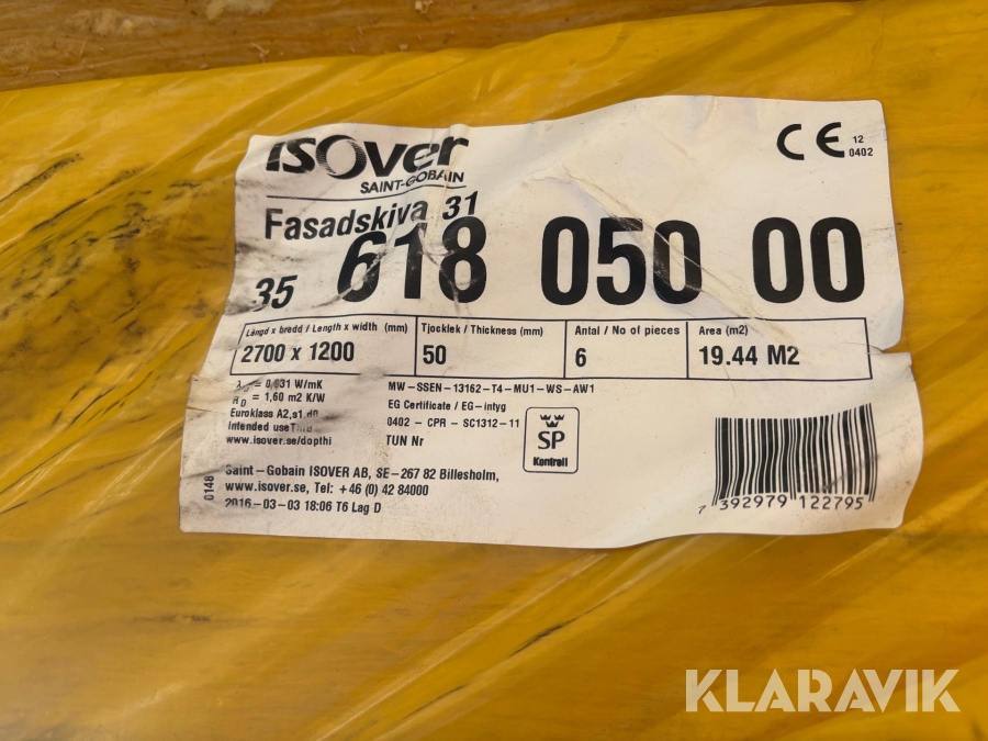 Isolering Fasadskivor Isover 50 mm