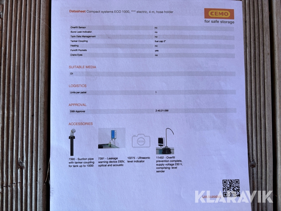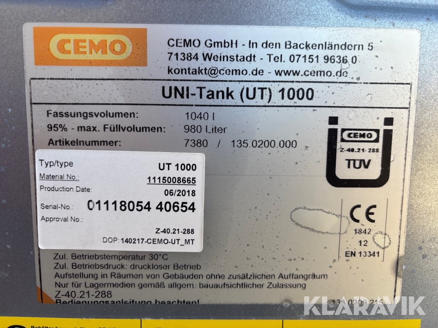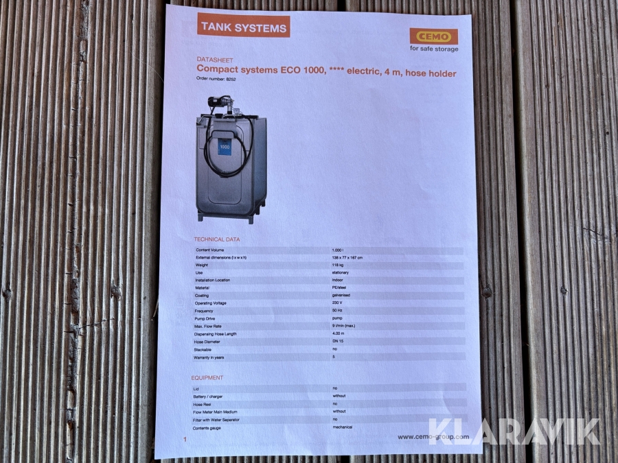 Bränsletank inkl pump Cemo UT 1000 och mätare