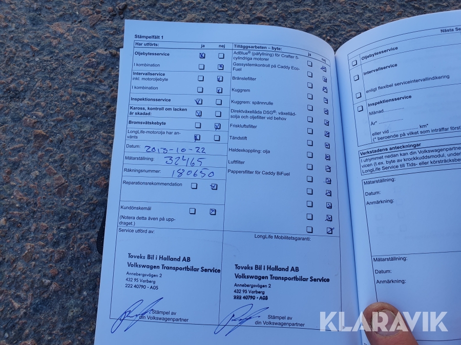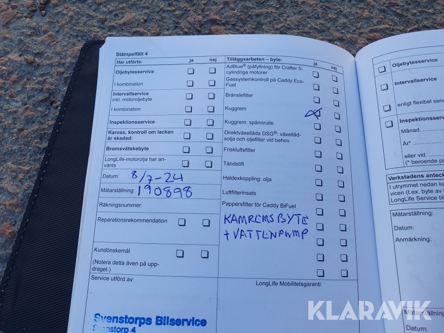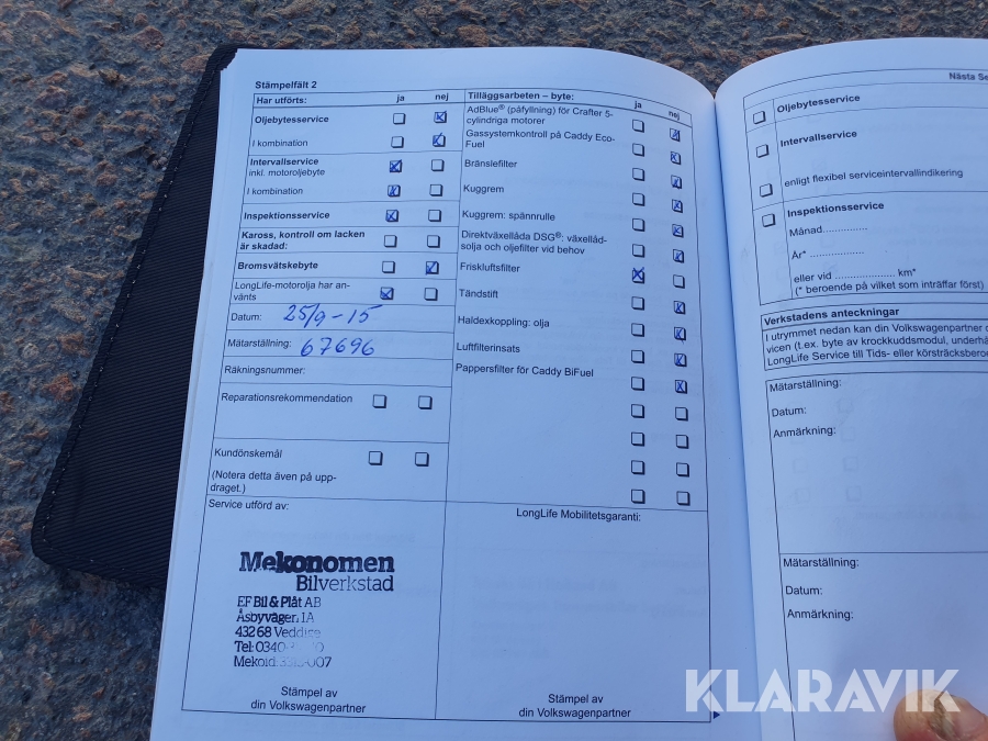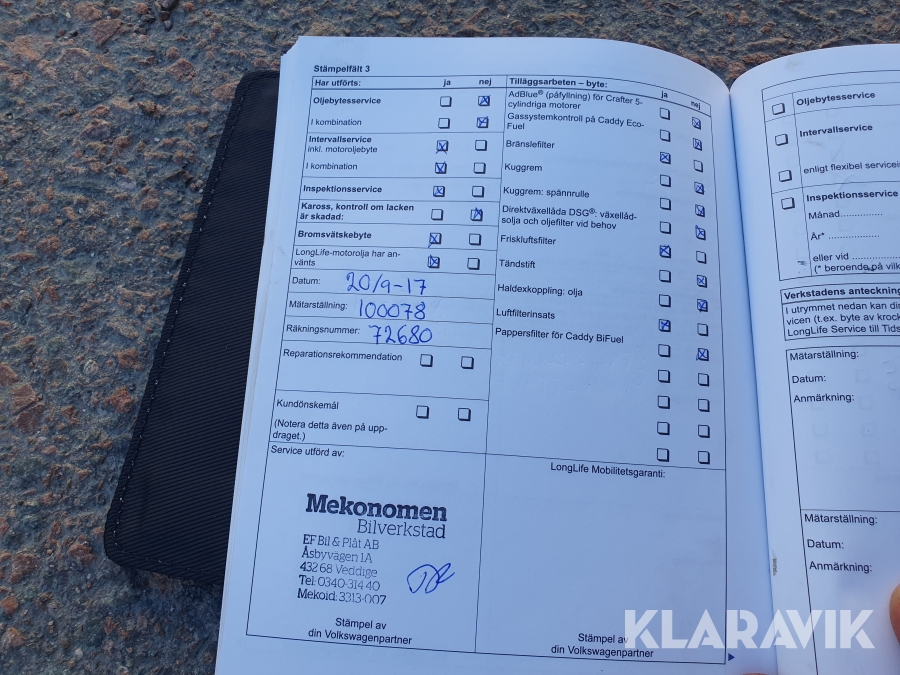 Se bilder på servicebok med stämplar & service.