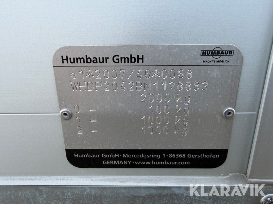 2-Axlad Hästtransport Humbaur Equitos Alu 1200 kg lastvikt