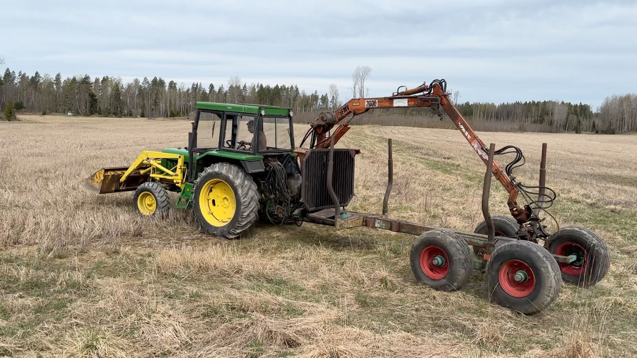 Traktor med timmervagn John Deere 2130