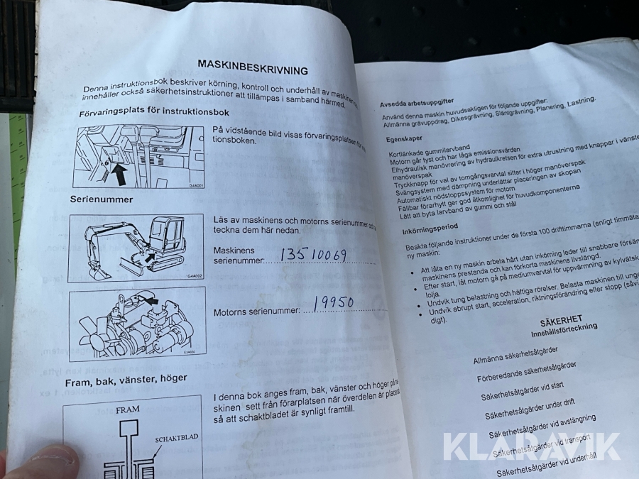• Serie/chassinummer framgår