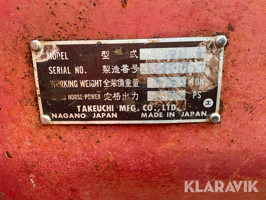 Grävmaskin Takeuchi Take-job TB135 med 3 skopor