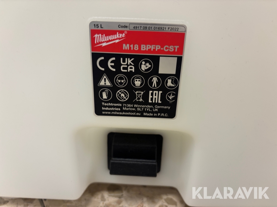 Kemisk spraytank Milewaukee M18 BPFP-cst 15Liter