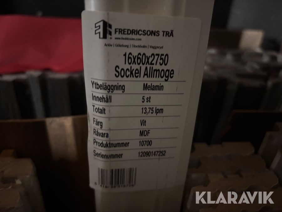 Golvlist / sockel Allmoge 16x60x2750mm vit 70st