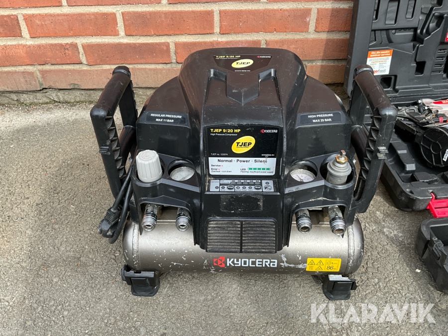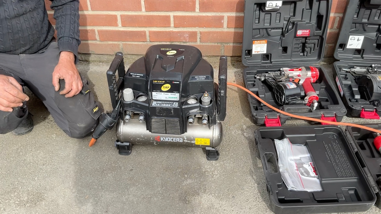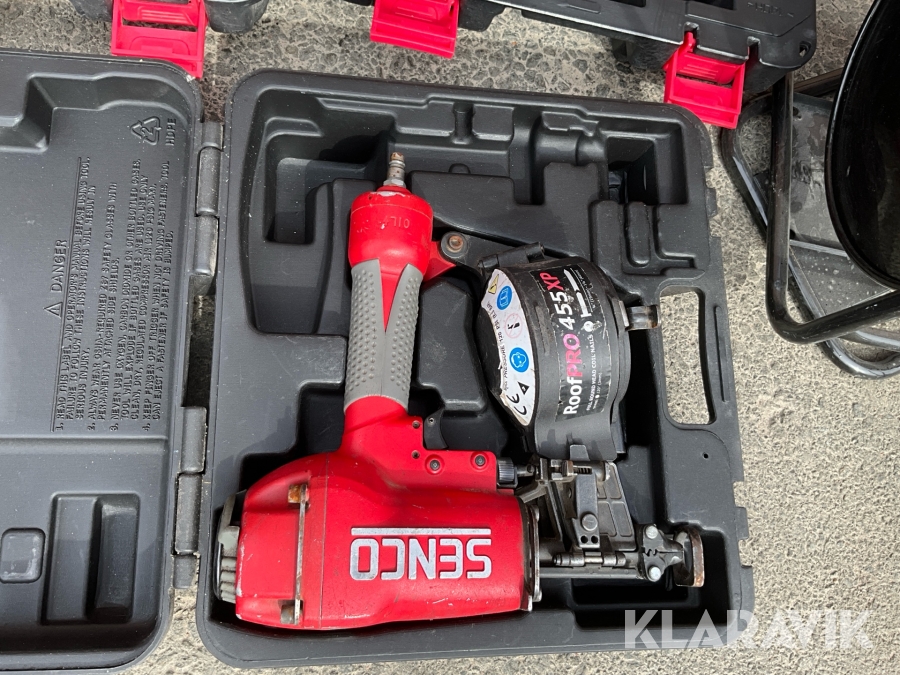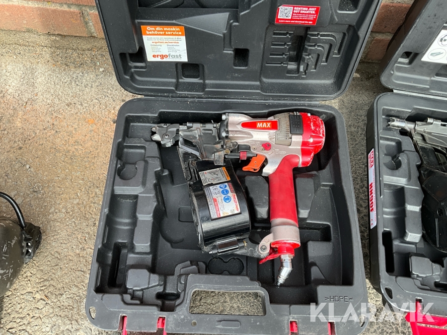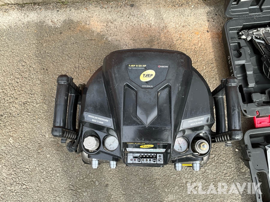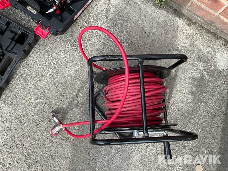 Kompressor, slangvinda och 3st spikpistoler Tjep / Senco/ Max