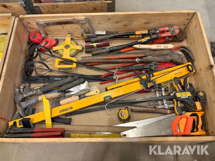 Parti med diverse byggverktyg
