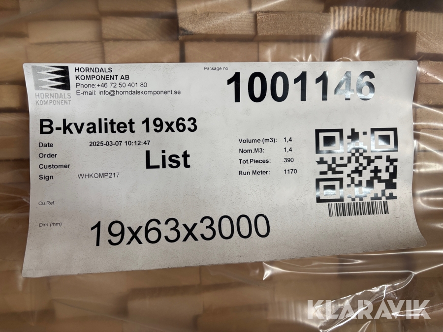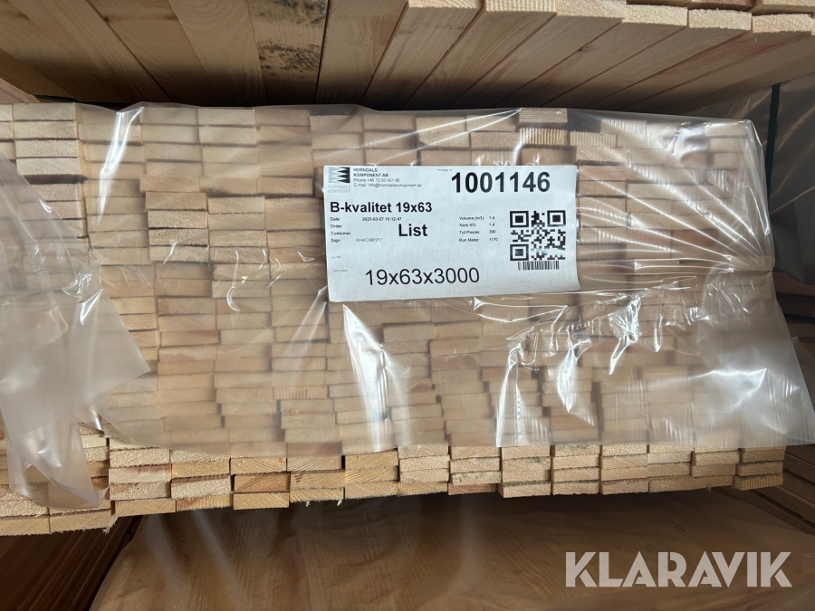 Virke B-kvalitet Horndals Virkesoulet 16x63 kvistfri 1170Lpm