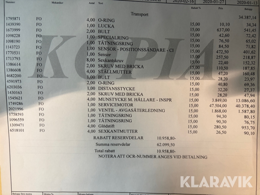 Boka frakt? Det finns ingen specifik information om frakt för just det här objektet, men om du skickar oss en förfrågan via vårt fraktformulär, så undersöker vi möjligheten. Paket, EU-pall eller större maskin? Klaravik har fraktavtal med Schenker och i de fall vi kan hjälpa till med frakt gäller det objekt som ryms i paket eller inom en EU-pall (upp till 120*80 cm och 990 kg). Det går att beställa frakt inom Sverige, dock inte till utlandet. Vid frakt på större maskiner rekommenderar vi gärna transportföretag som du kan kontakta.