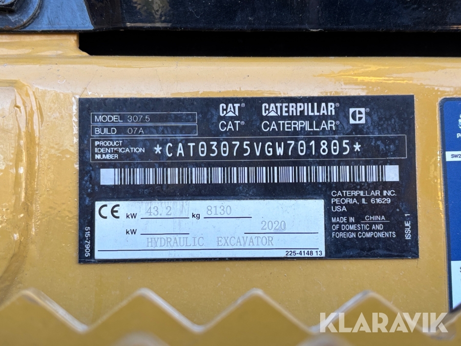 Grävmaskin CAT 307.5 NextGen 8 ton