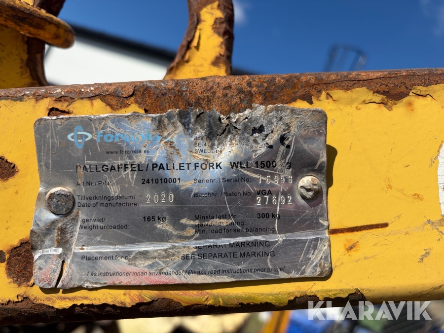 Pallyft till kran Forankra 1500 kg