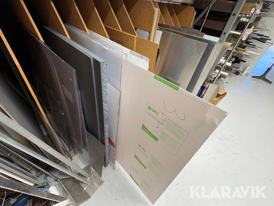 Råvarulager Skivmaterial, i plast,plexi,metall,rostfritt,mässing,aluminium, m.m.