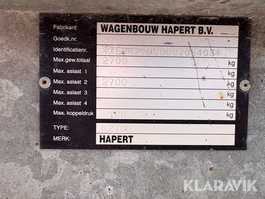 Matvagn Hapert K2700 komplett med utrustning