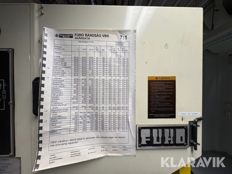 Bandsåg Schuchardt & Schutte Maskin AB VBS2012AS FUHO