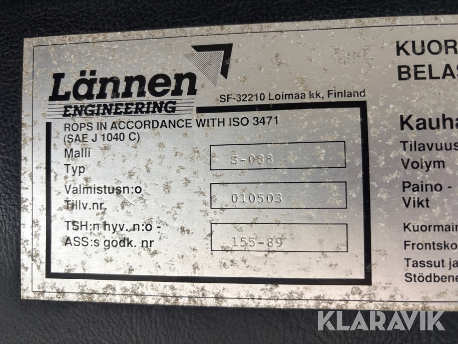 Grävlastare Lännen C110S med redskap