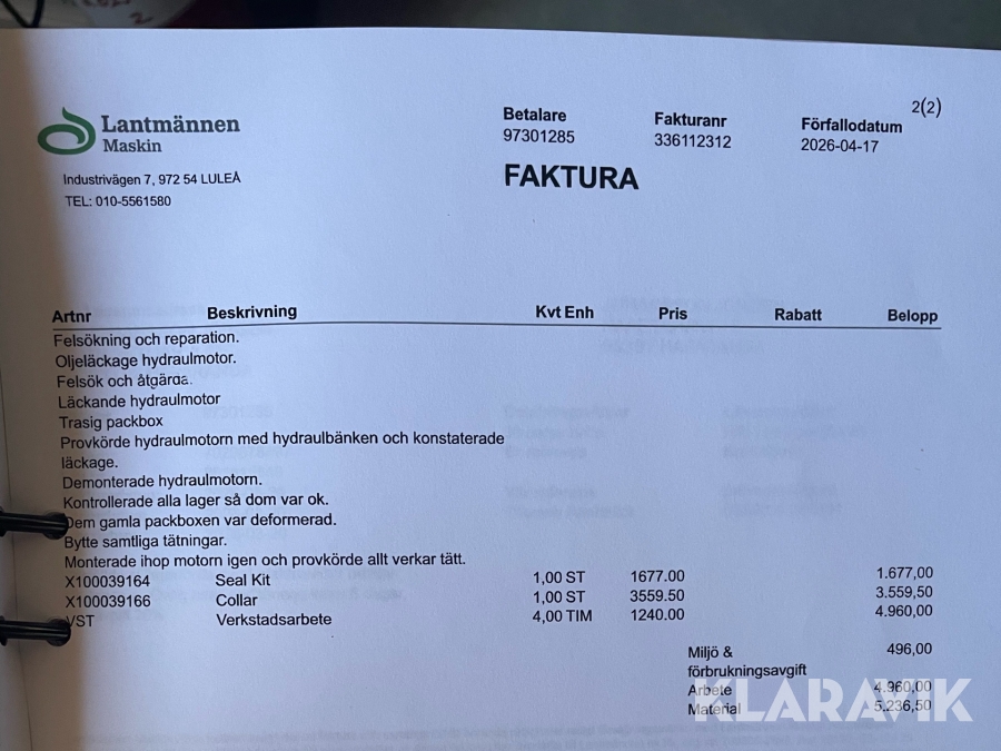 Du som köpare är skyldig att kontrollera objektet vid hämtning. Skiljer sig något avsevärt jämfört med informationen på klaravik.se? Kontakta då Klaravik innan du tar objektet från platsen. Läs fullständiga köpvillkor.