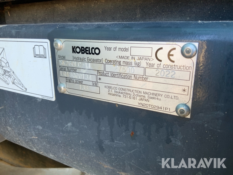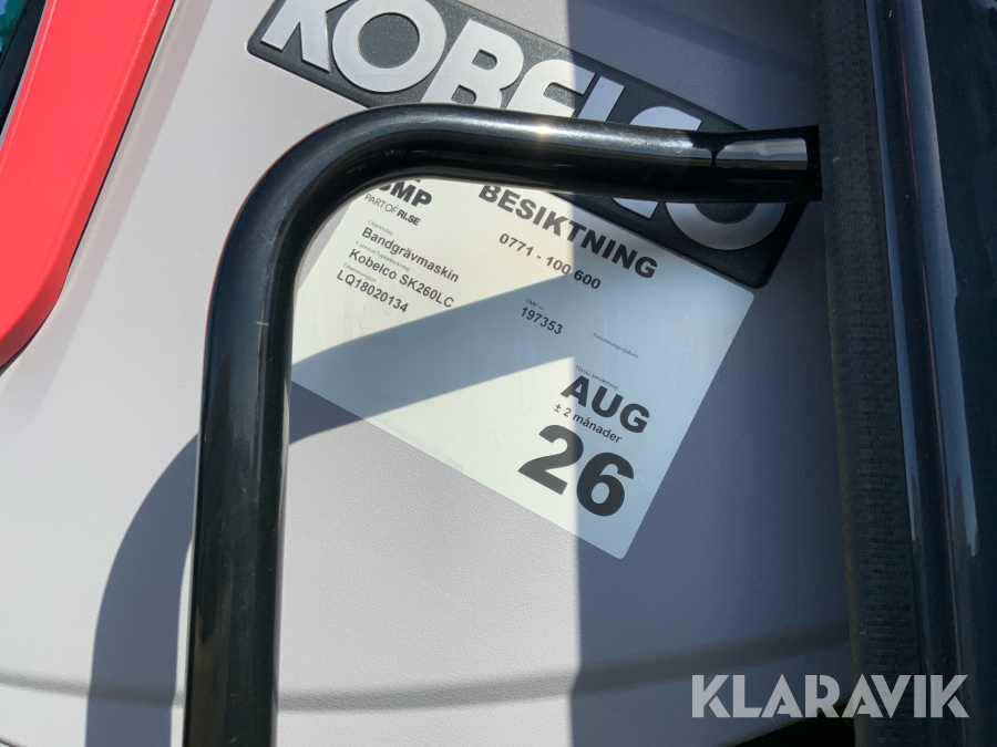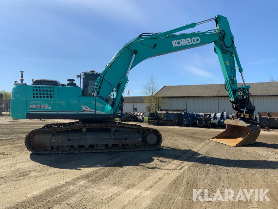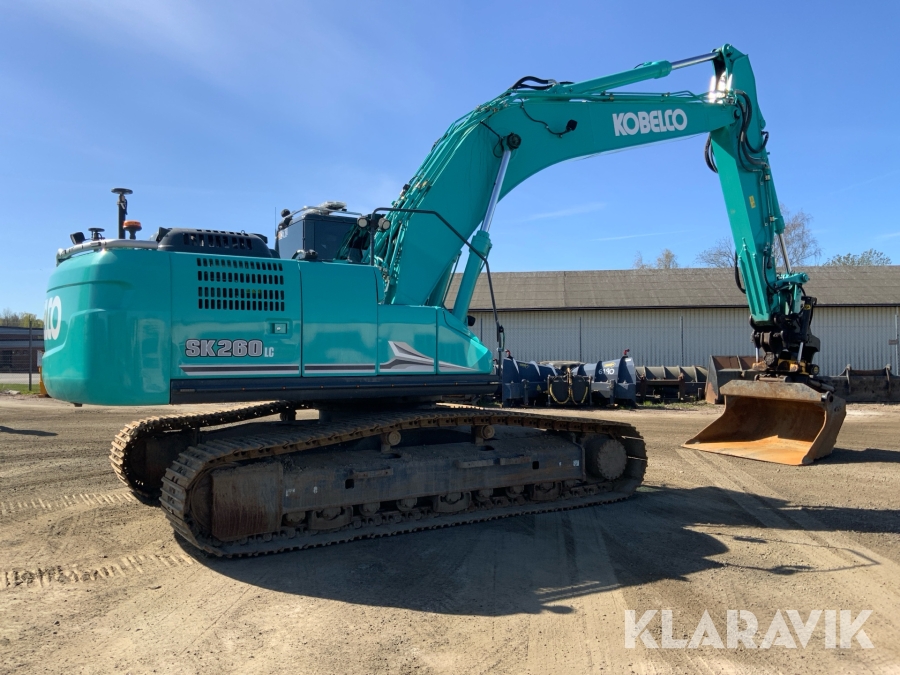 Grävmaskin Kobelco SK 260 LC-11 med flak och flera redskap