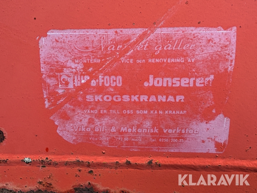 Virkeskran Jonsered med hytt