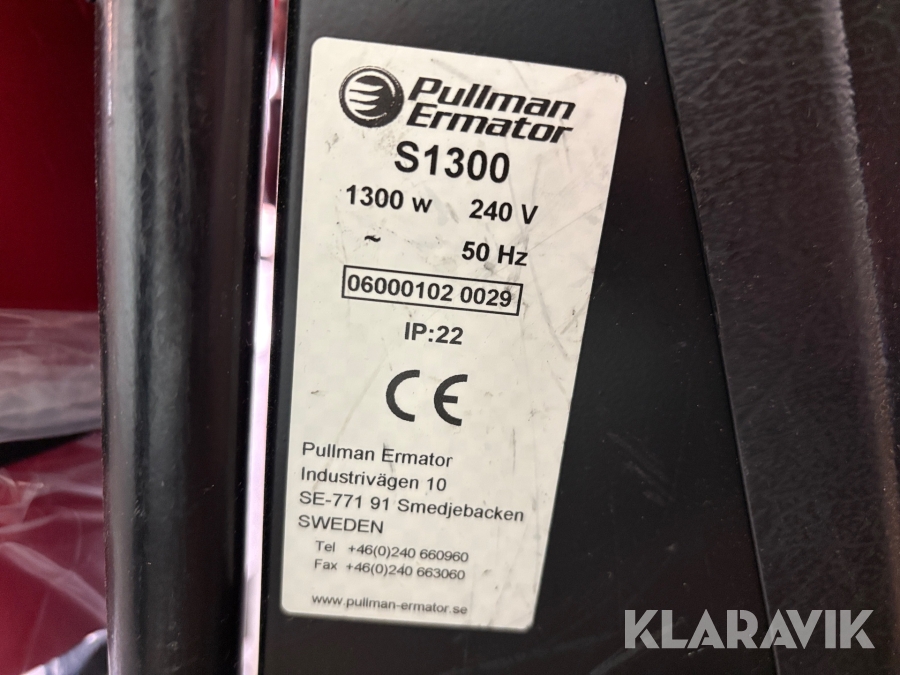 Boka frakt? Det finns ingen specifik information om frakt för just det här objektet, men om du skickar oss en förfrågan via vårt fraktformulär, så undersöker vi möjligheten. Paket, EU-pall eller större maskin? Klaravik har fraktavtal med Schenker och i de fall vi kan hjälpa till med frakt gäller det objekt som ryms i paket eller inom en EU-pall (upp till 120*80 cm och 990 kg). Det går att beställa frakt inom Sverige, dock inte till utlandet. Vid frakt på större maskiner rekommenderar vi gärna transportföretag som du kan kontakta.