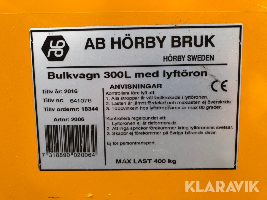 Bulkvagn AB Hörby Bruk 300L med lyftöron